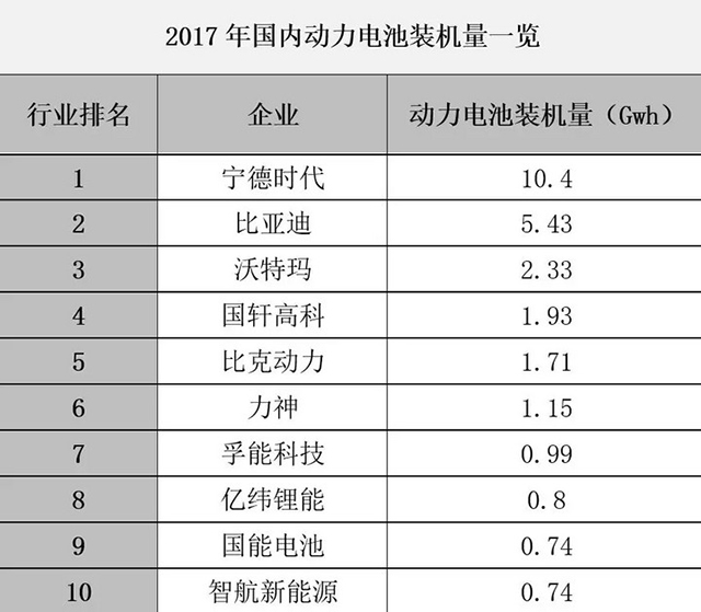 數(shù)據(jù)顯示,在整個(gè)2017年,寧德時(shí)代電池裝機(jī)量以10.4GWh趕超比亞迪,成為新的行業(yè)“一哥”。比亞迪和沃特瑪分別以5.43GWh和2.33GWh排名第二和第三位。在全球范圍內(nèi)看來(lái),如果算上海外市場(chǎng)的的動(dòng)力電池出貨量,CATL的累計(jì)數(shù)據(jù)是12GWh,已經(jīng)超越了排名第二的松下(10GWh),成為了全球范圍內(nèi)最大的動(dòng)力電池供貨商。